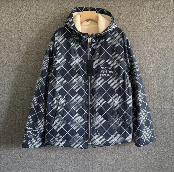 優寶購物《ubao.Tw》特貨品商城,黑貓宅配,取貨付款,翡翠王.一元起標 全新 男女同款 LOUIS VUITTON LV 2面穿深藍色格紋加絨拉鏈外套連帽外套48/50碼 保真假貨包退 | Yahoo拍賣