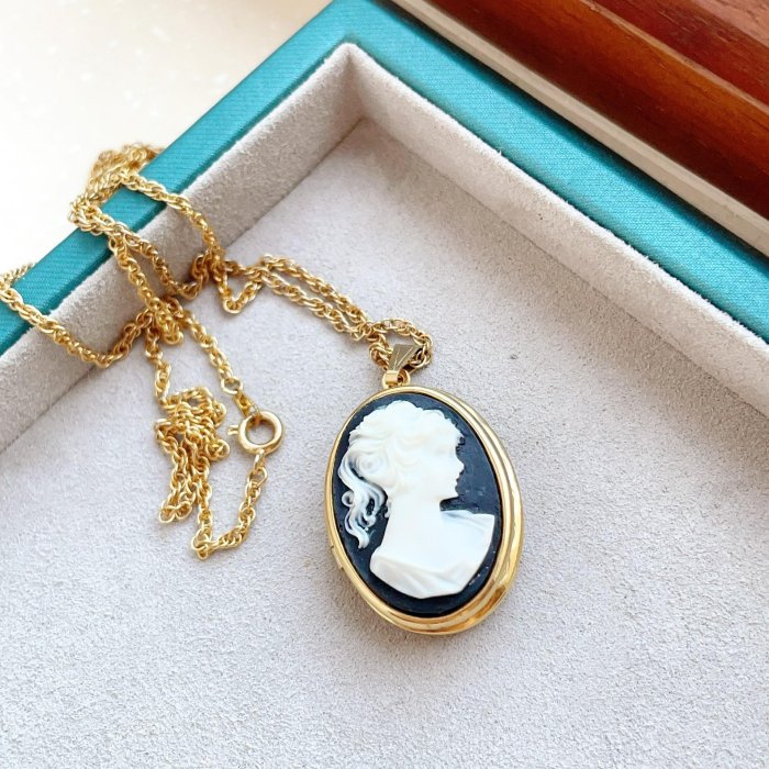 優寶購物《ubao.Tw》特貨品商城,黑貓宅配,取貨付款,嚴選vintage卡梅奧肖像吊墜項鏈,黑色 resin 白色浮雕人物,可開合相片盒設計,金色鏈條,獨特褪色美韻。收藏級 vintage 珠寶。 Vint | Yahoo拍賣