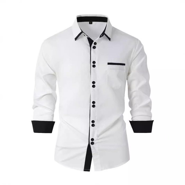 優寶購物《ubao.Tw》特貨品商城,黑貓宅配,取貨付款,2026跨境歐美時尚男裝春秋款棉拼色商務翻領修身休閑男士長袖襯衫 | Yahoo拍賣