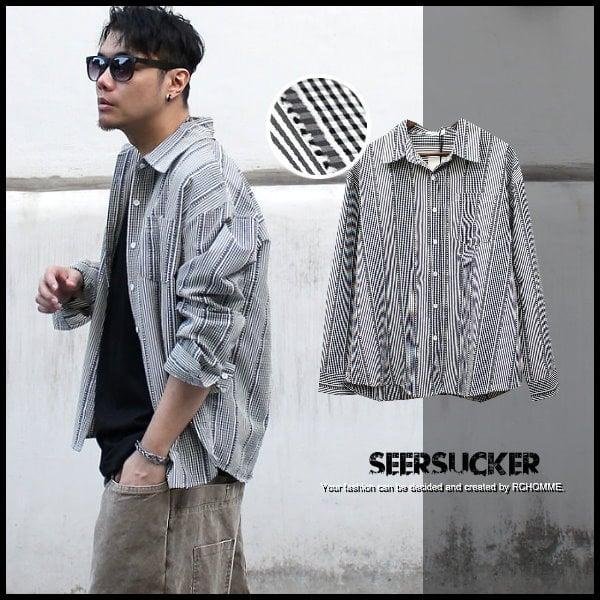 優寶購物《ubao.Tw》特貨品商城,黑貓宅配,取貨付款,。R.C。Vogue.質感概念款!! 格紋+直條不對稱拼接.單口袋.泡泡紗挺布造型條紋襯衫.GD.BTS!!~促銷580 | Yahoo拍賣