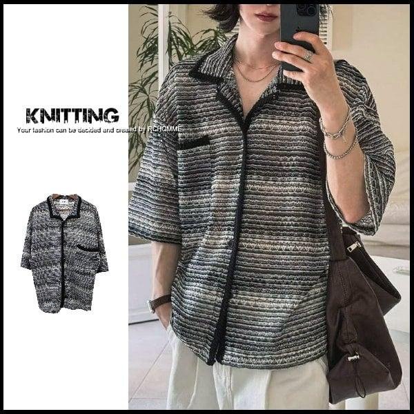 優寶購物《ubao.Tw》特貨品商城,黑貓宅配,取貨付款,。R.C。VOID 正韓概念款!! 質感滾黑邊+配色織紋.寬版七分袖.古巴領.網狀針織襯衫.開襟罩衫GD!!~促銷680 | Yahoo拍賣
