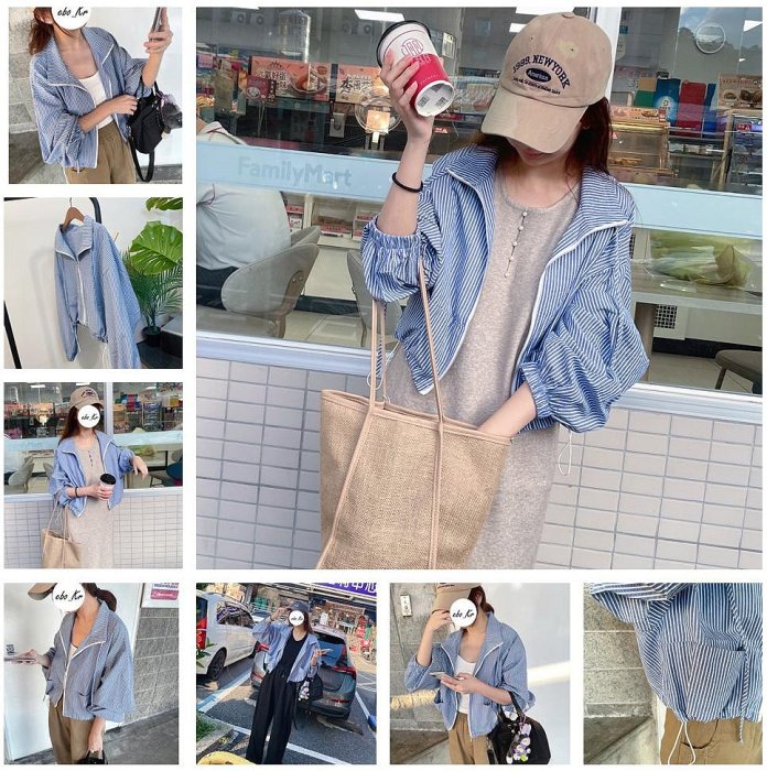 優寶購物《ubao.Tw》特貨品商城,黑貓宅配,取貨付款,*EBO_KR*韓 天空藍條紋抽繩腰身拉鍊外 | Yahoo拍賣