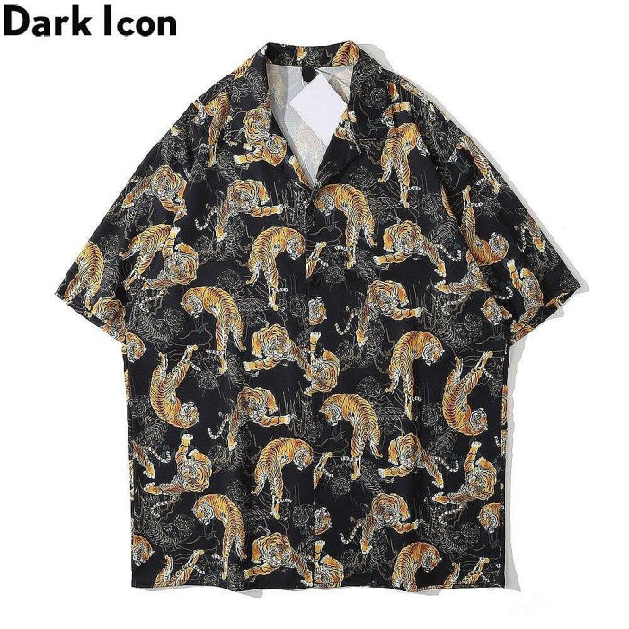 優寶購物《ubao.Tw》特貨品商城,黑貓宅配,取貨付款,Dark Icon老虎印花街頭時尚男式日系襯衫夏季馬球衫薄料夏威夷襯衫潮牌衣服【小野優選】 | Yahoo拍賣
