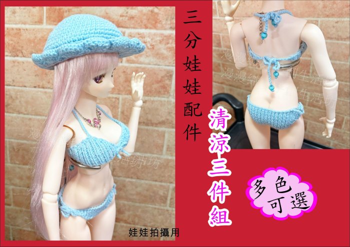 優寶購物《ubao.Tw》特貨品商城,黑貓宅配,取貨付款,娃用 成品 清涼三件套 泳衣 性感 三分娃用品 成品 『漫漫織夢』 DD BJD SD 關節娃 1/3 手工毛線編織 | Yahoo拍賣