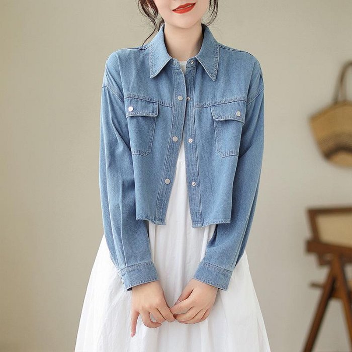 優寶購物《ubao.Tw》特貨品商城,黑貓宅配,取貨付款,實拍秋季新款短款牛仔外套女2023牛仔襯衫短外套小個子上衣【塔羅優選】 | Yahoo拍賣