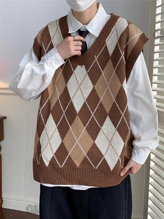 優寶購物《ubao.Tw》特貨品商城,黑貓宅配,取貨付款,潮衣庫『2025新款菱格v領背心男日系港風復古套頭針織馬甲學院風情侶毛衣』外套馬甲坎肩外套牛仔針織背心 | Yahoo拍賣