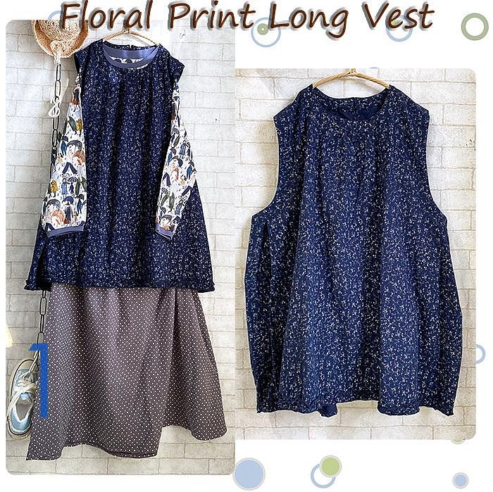 優寶購物《ubao.Tw》特貨品商城,黑貓宅配,取貨付款,Floral Print Long Vest 微甜溫暖花卉印花磨毛寬鬆長版背心小洋裝-深藍 Size F | Yahoo拍賣
