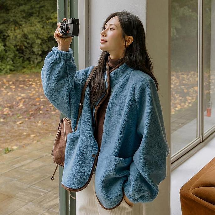 優寶購物《ubao.Tw》特貨品商城,黑貓宅配,取貨付款,Bellee 正韓 可愛氣息 撞色斜紋滾邊大口袋壓扣外套 (2色) 【1022-34】 | Yahoo拍賣