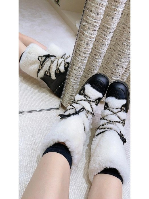優寶購物《ubao.Tw》特貨品商城,黑貓宅配,取貨付款,Chanel香奈兒 秋冬經典款 小香鏈條羊羔毛短靴短筒厚底雪地靴 | Yahoo拍賣