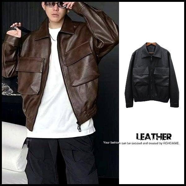 優寶購物《ubao.Tw》特貨品商城,黑貓宅配,取貨付款,。R.C。韓著概念款!! 立體工裝大口袋+特殊背部剪裁.雙拉鍊.荔枝紋.下擺縮口布勞森皮衣.皮外套GD!!~促銷1080 | Yahoo拍賣