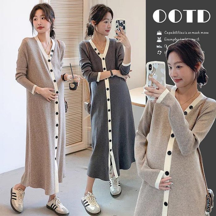 優寶購物《ubao.Tw》特貨品商城,黑貓宅配,取貨付款,現貨#孕婦連衣裙秋裝224新款外出時尚寬松領單針織字裙子中長款 | Yahoo拍賣
