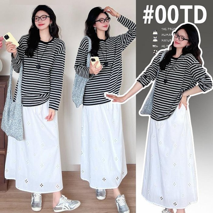 優寶購物《ubao.Tw》特貨品商城,黑貓宅配,取貨付款,現貨實拍大碼孕婦裝針織條紋孕婦恤豬鼻扣半身裙兩件套孕婦套裝 | Yahoo拍賣