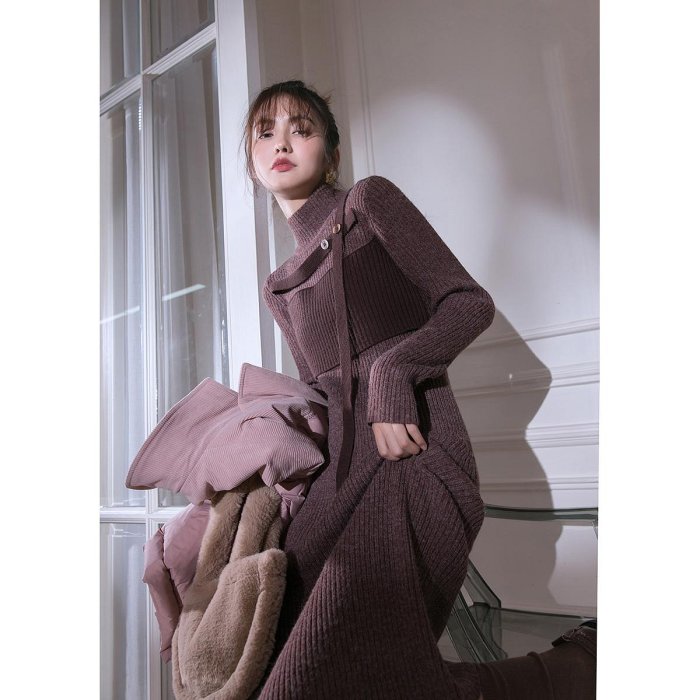 優寶購物《ubao.Tw》特貨品商城,黑貓宅配,取貨付款,嚴選COTRE獨立設計深木棕質感高腰修飾連衣裙新潮款 高腰修身 連衣裙 新中式風格 | Yahoo拍賣