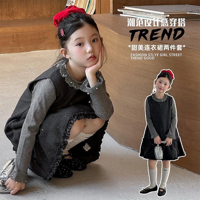 優寶購物《ubao.Tw》特貨品商城,黑貓宅配,取貨付款,女童連衣裙套裝2025秋冬新款小女孩時髦加厚撒銀花邊背心裙公主裙 | Yahoo拍賣