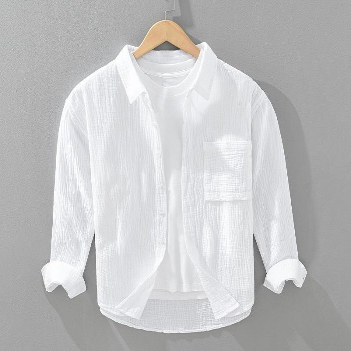 優寶購物《ubao.Tw》特貨品商城,黑貓宅配,取貨付款,2071長袖襯衫新款男春秋季寬松高級感純棉襯衫純色翻領襯衣外套 | Yahoo拍賣