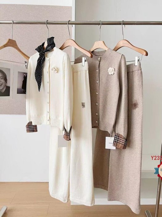 優寶購物《ubao.Tw》特貨品商城,黑貓宅配,取貨付款,明星衣櫃=2025秋冬新款女花朵拼接格子氣質溫柔風針織開衫垂感闊腿褲兩件套 | Yahoo拍賣