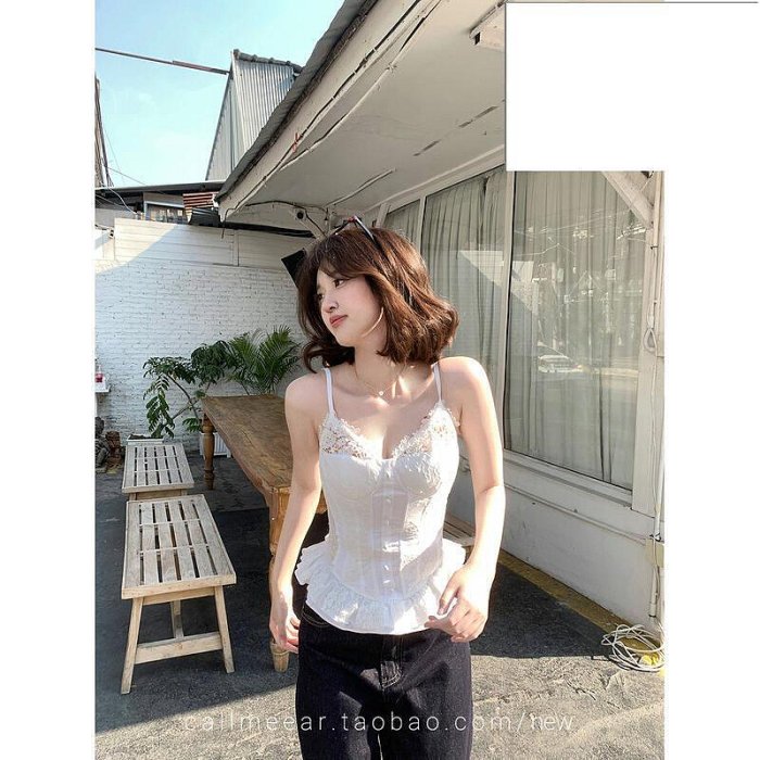 優寶購物《ubao.Tw》特貨品商城,黑貓宅配,取貨付款,CallmeEar【垂絲茉莉】蕾絲拼接胸衣女春修身純欲吊帶背心 | Yahoo拍賣