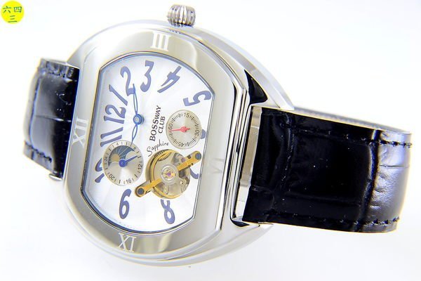 優寶購物《ubao.Tw》特貨品商城,黑貓宅配,取貨付款,(六四三精品)BOSSWAY(真品)日月相.24小時制.陀飛不銹鋼自動上鍊.運動.三眼..白面 | Yahoo拍賣