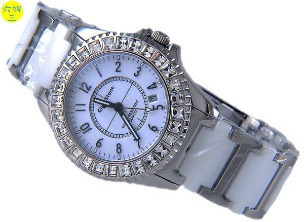 優寶購物《ubao.Tw》特貨品商城,黑貓宅配,取貨付款,(六四三精品)GLSD STONE(真品)高檔白陶瓷.不銹鋼.藍寶石水晶鏡面大型鑽錶!白面 | Yahoo拍賣