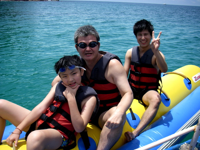 小弟弟..坐香蕉船就是要翻才好玩嘛..