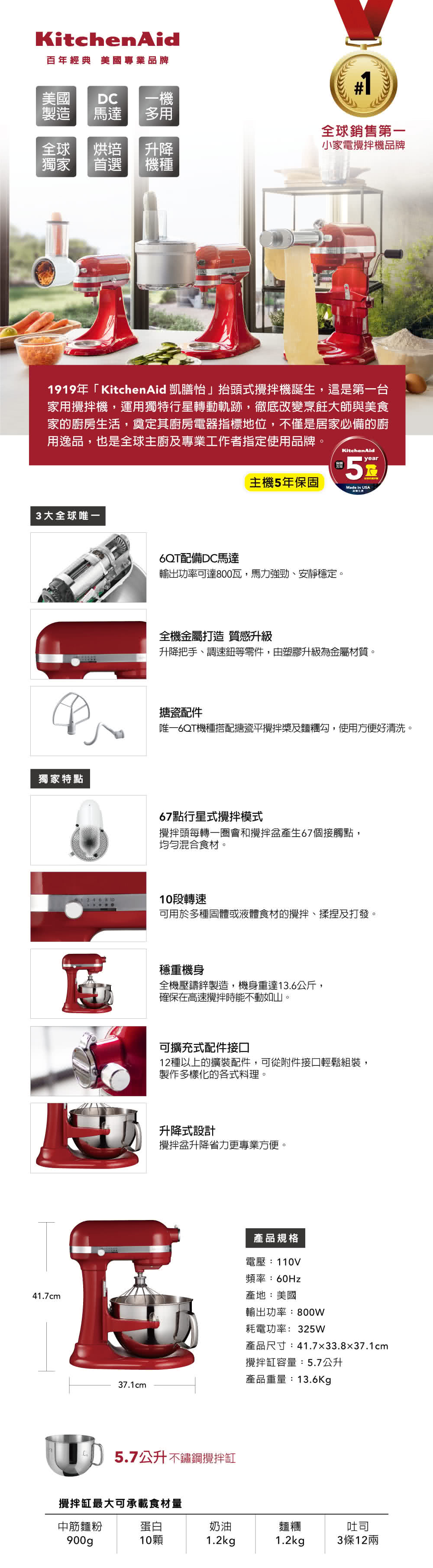 【KitchenAid】桌上型拌-升降型-6Q(牛奶白) 的介就在下面