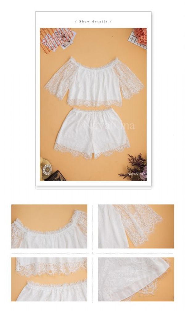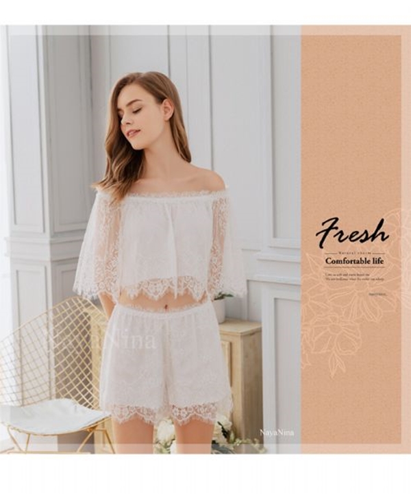 二件式白空蕾衣短套 居家睡衣