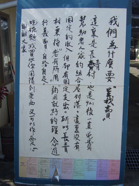 以上文字摘自 九二一震重建基金 / 志 FORMOSA / 成立菩提青村老人社