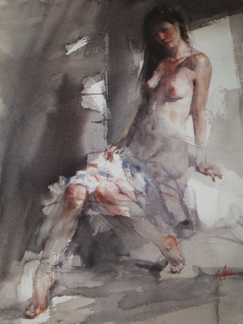 灰褐色的基底有中水墨的味,女子上的一坨嫣竟有陋室生春的,腹部的薄又出「抱琵琶半遮面」的羞,作者裸女春色作了最含蓄的描述,真的是味十足。