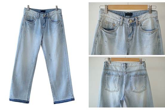 看直筒平看像方型,穿上去就知道它的大,做了二手的拆破感,有著小的魅力。