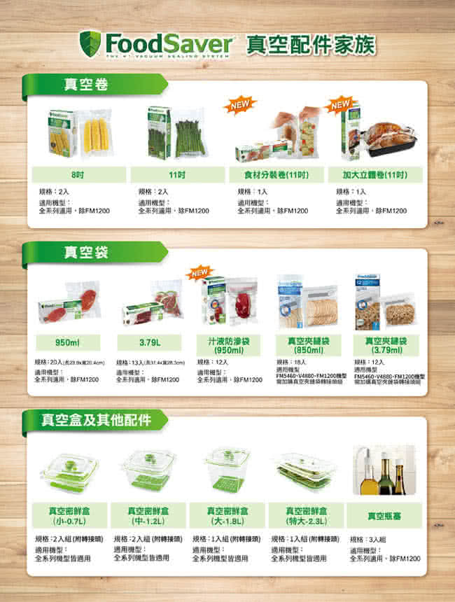 • 需搭配FoodSaver真空