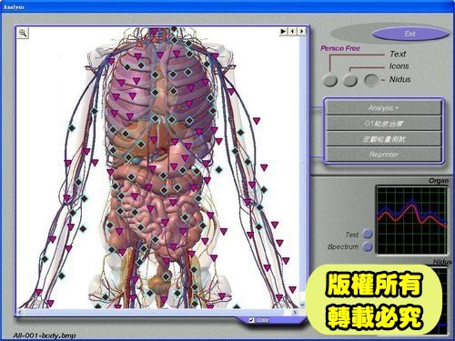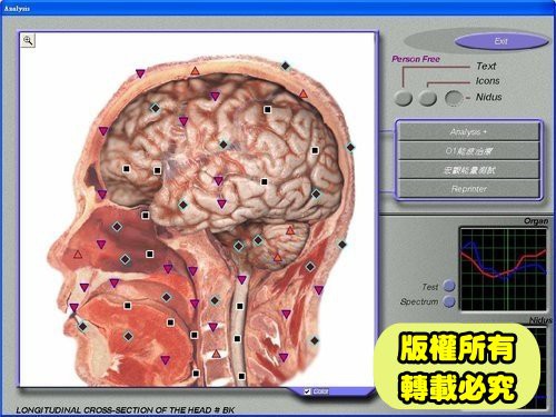 由我放在上投射部察的特殊送器取,就能取身健康。而籍著所集身所出的、光及量子波率,即可量及分析身健康;如此就能低被病魔攻的,到防於治的效果。