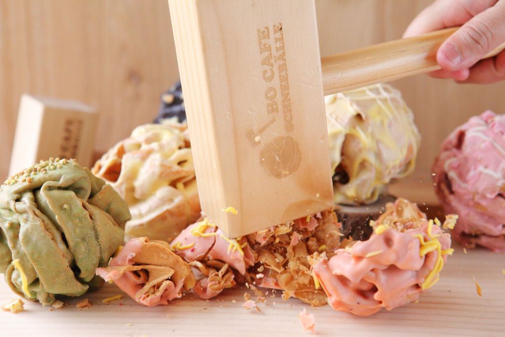 食用前必先以木槌捶打,放乾中的粉香和果物馥蜜,瓦解既有的。雪球口感爽脆,滋味沁甜,等你敲下喜,敲出幸福。
