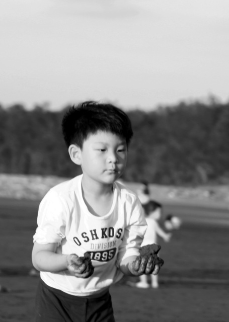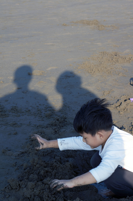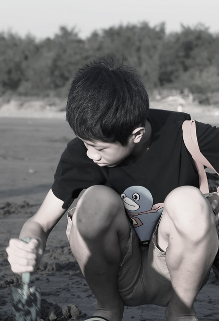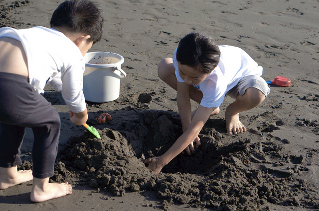 玩水,玩沙是小孩子百玩不的事。不想小孩子看,就是他去做做的事。