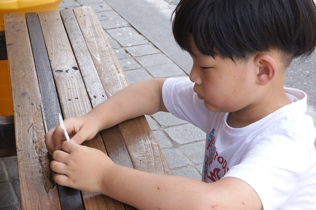 路上很多地方小店可以逛,但我是有目的地的晃,要晃到迪迪最想吃的冰淇淋。可可首推『蜷尾家』冰淇淋,正宗日式口味。我到店,所以我是最早的一客人,抽得牌。