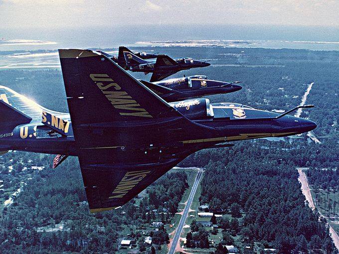 A-4天式攻於1956年10月起即正式部署於各航空群,精巧盈且造型流先的就算搭引擎推力不大(PW-J52-P8A 出力9300磅),