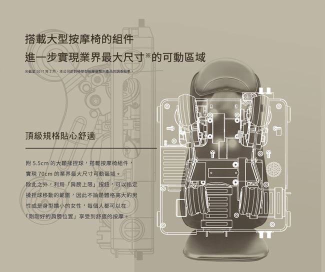 大尺寸的70cm靠背造,大地部到肩膀、後背、腰部、臀部。
