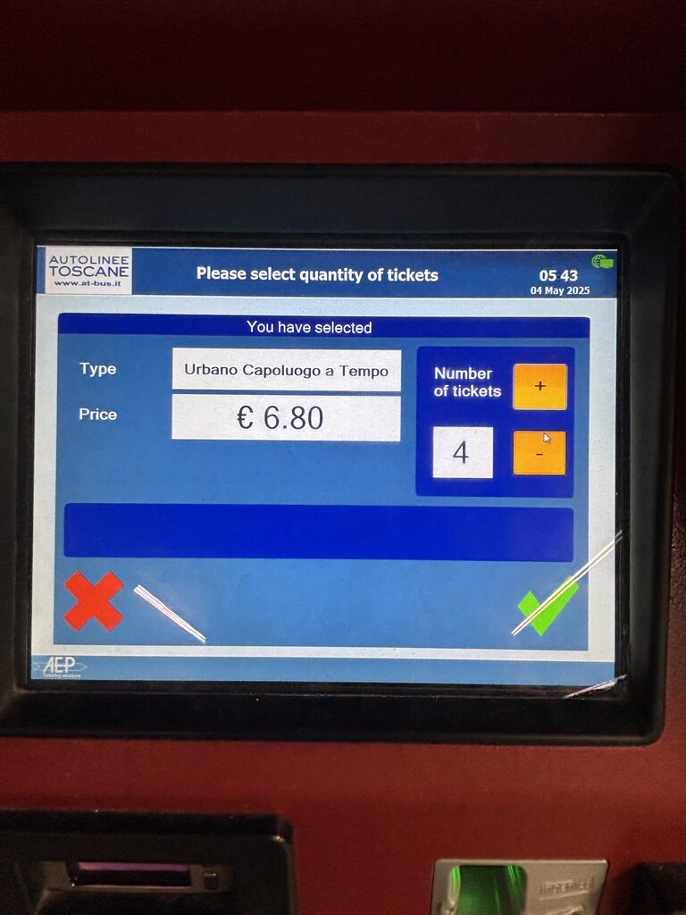 佛斯公: https://www.at-bus.it/en/travel/lines-and-timetables/firenze,打票後可以在90分限次搭乘公、路面。打票只要票彩色面朝上,箭的方向插入打票打票,票面上打印出打票的日期。