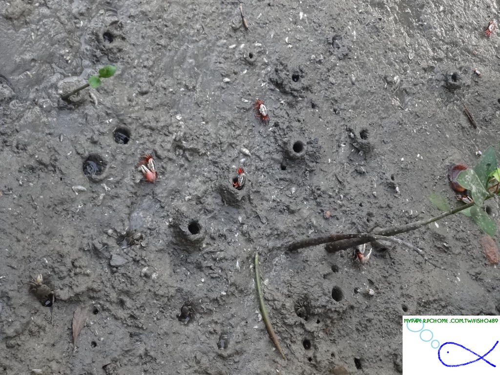 拍著些照片,玩笑著要台友找有招潮蟹,依婷在一旁偷笑著。