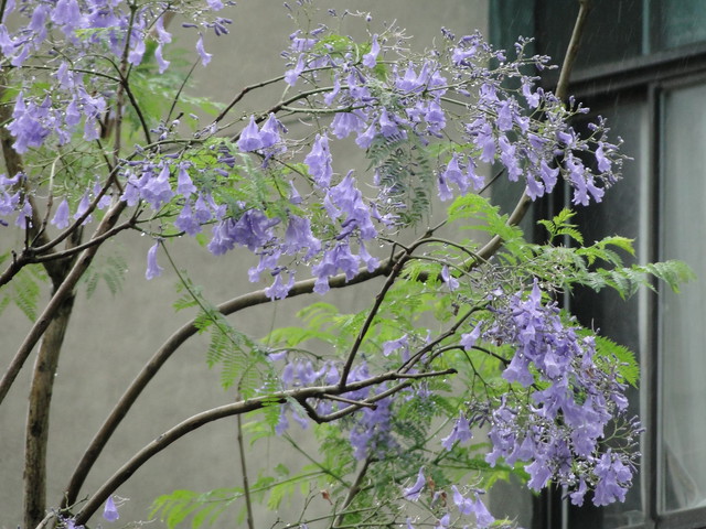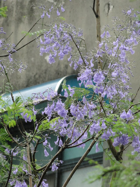 此刻原是它的花季,水色的花群聚於枝,色美得神奇,色的花竟不多,花楹的是一亮,秋天有出的天空色彩,很美,很美。