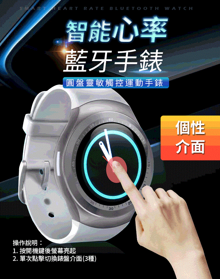 款心率手,外型酷配戴感提升,支援步/音播放/心率精算 支援中文示,即提醒端息