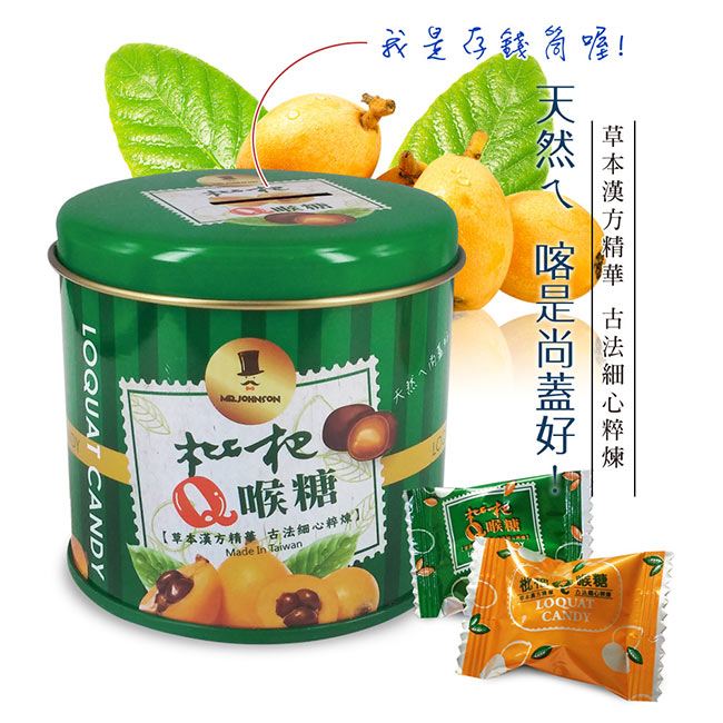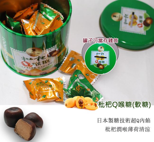 特殊罐型可存筒,每枇杷Q喉糖立包,可以身好食用!