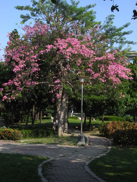 一粉的花,立在曲弧的小旁,公添加了意景,在暮夏午後的光中,有一份慵人......