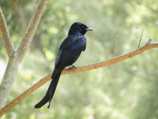 大卷尾全身羽色漆黑有光;尾羽,末端、分叉;尾部呈尾,有助於行。有微微向上起的尾巴,因此叫做大卷尾;另外,因全身羽毛黑不溜秋的故,所以一般人又叫「秋」。