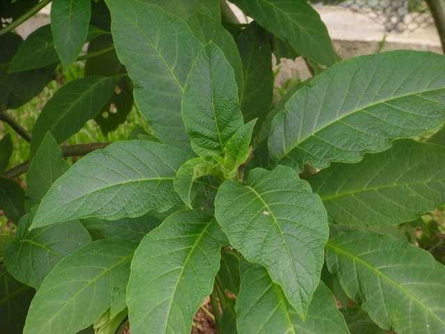 互生,卵披形、矩形或卵形, 15-30 公分, 6-13 公分,端尖或急尖,基部不楔形或楔形,全、微波或有不缺刻,,面色,背色,面被微柔毛;羽 7-9 , 9-22 公分, 3-9 公分,格明;柄 5-10 公分,托。