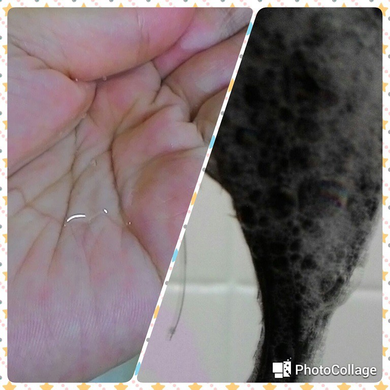 款乳白色乳地像乳霜很,取一地乳,抹於尾,的部分, 稍加的按摩一下,待分後,再充分洗乾洗後,已非常柔了。