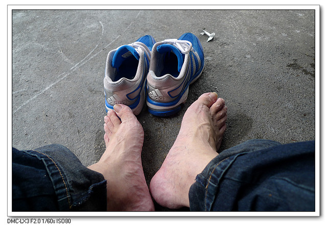 不很可惜 大雨中 鞋子了 管了 防水的背包也早就透了