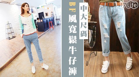 中大尺牛仔,刷破工牛仔!布料、女人的便魅力,微破尚率性,有腰款,穿超舒
