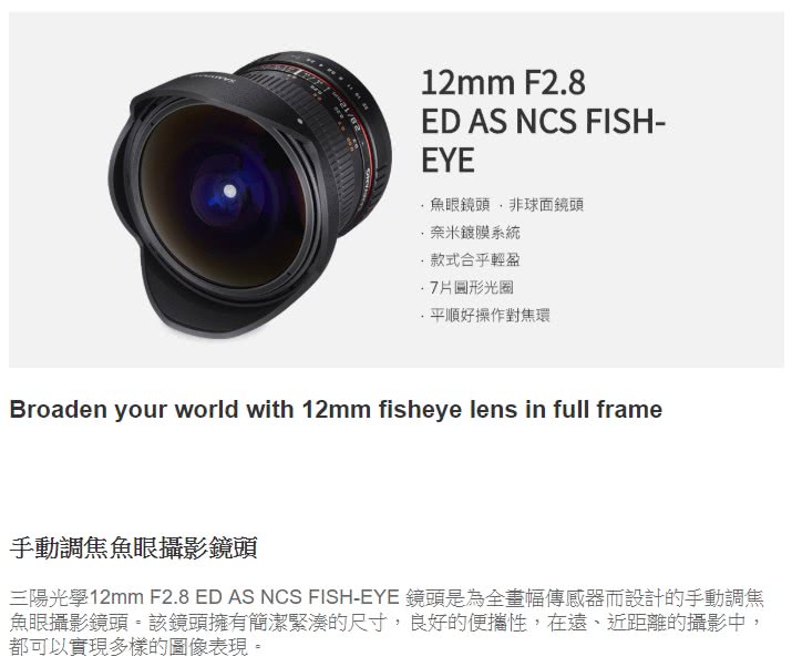 【SAMYANG】12mm F2.8 ED AS NCS Fish-eye 手焦(公司 CANON)手,不相信有人不知道在就能的到【SAMYANG】12mm F2.8 ED AS NCS Fish-eye 手焦(公司 CANON)