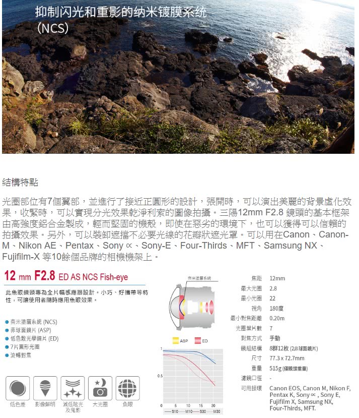 【SAMYANG】12mm F2.8 ED AS NCS Fish-eye 手焦(公司 CANON) ,推,箱,CP值,,,便宜,惠,介,排行,精,特,周年,,限