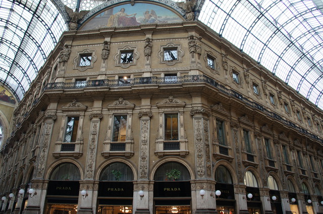 教堂塔下,我去艾曼二世廊。是念米市民取自由的艾曼二世而命名的,主教堂上有艾曼二世的雕像。聚集大利最尚最流行的商品。不你著各式各的商店,不要忘看看,看看四周。